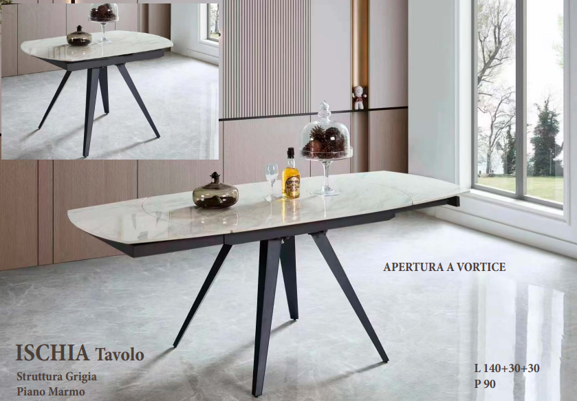 Design moderno e raffinato, il tavolo Ischia offre eleganza e solidità grazie alla sua struttura grigia