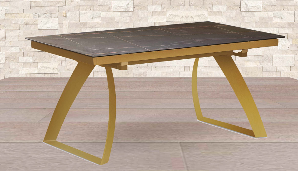 Design moderno e raffinato, il tavolo Luxuria offre eleganza e solidità grazie alla sua struttura in metallo champagne.