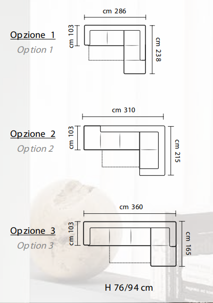 Misure modalità 2 : L 310 P 103/215 H 76/94 cm