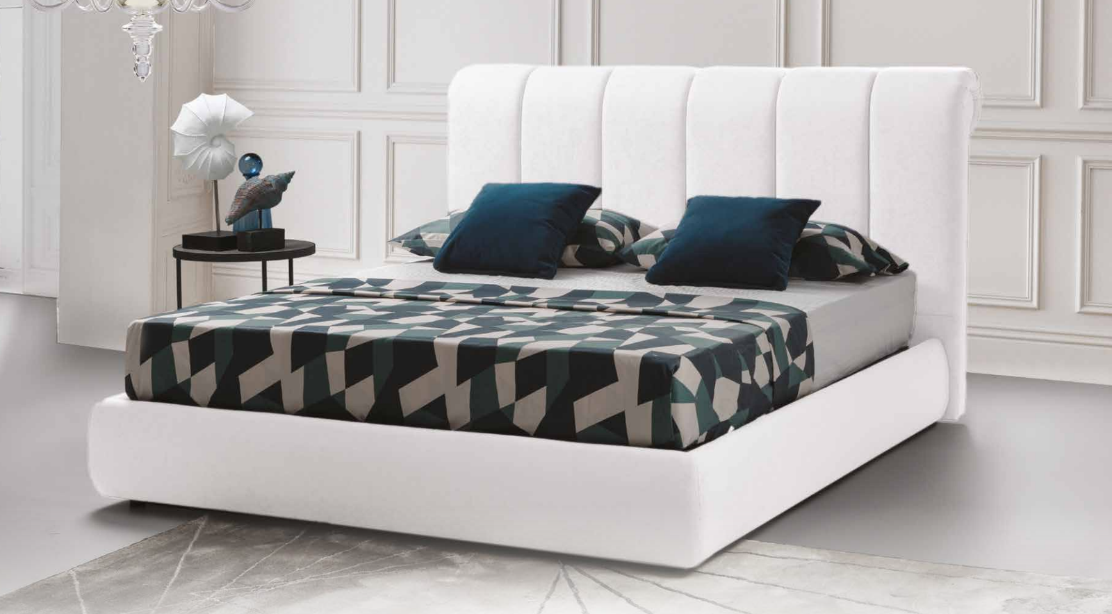 La struttura solida è rivestita in tessuto di alta qualità che dona carattere e personalità alla zona notte.